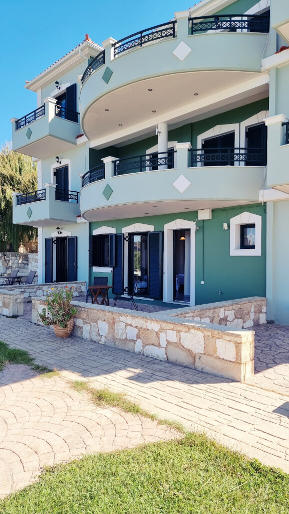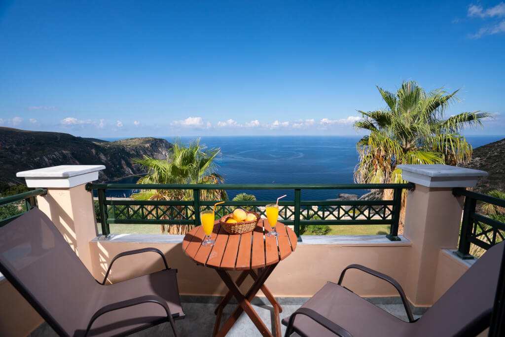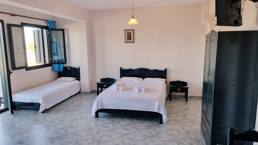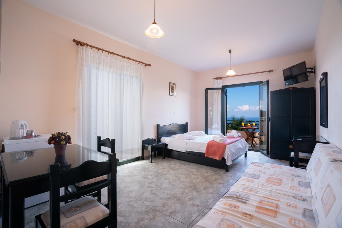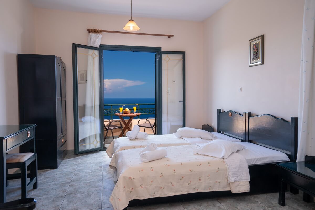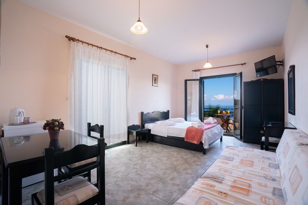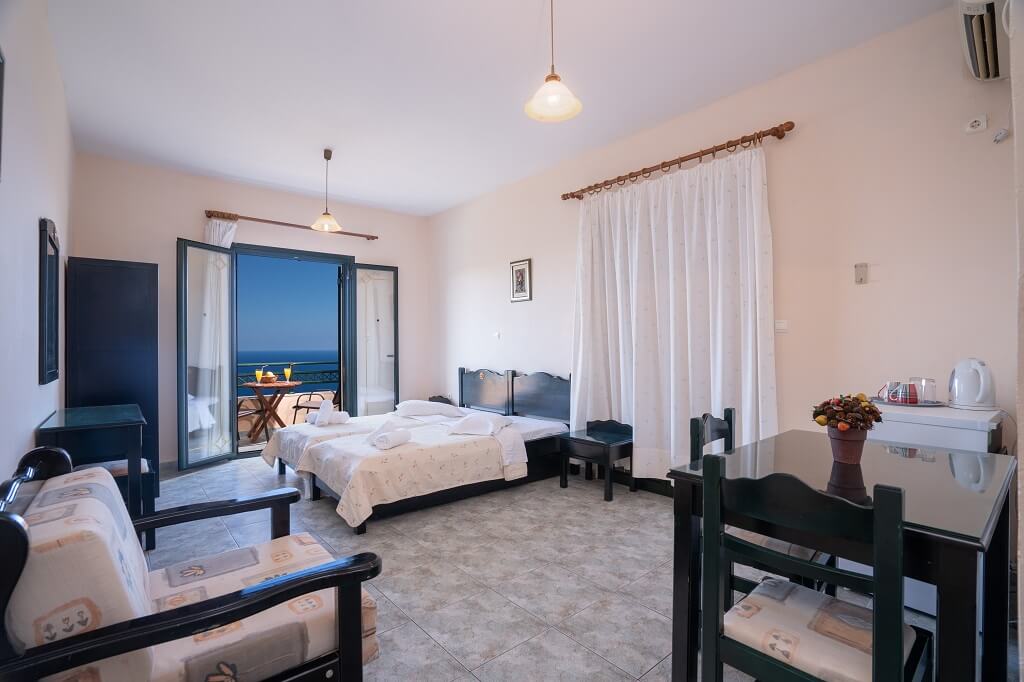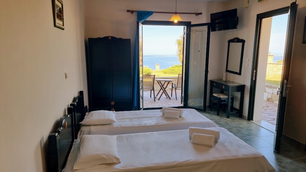 Every room has a view on the Ionian sea. Each unit is simply but functionally furnished and it has a balcony or veranda with a view on the sea.