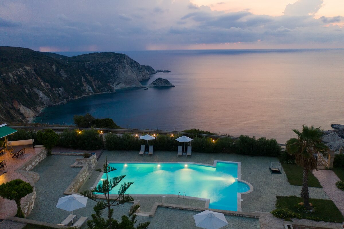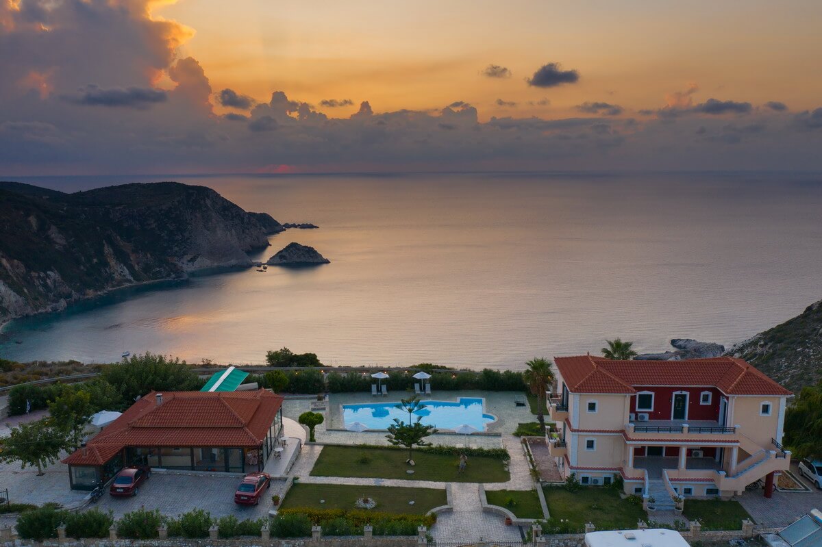 Niforos Panorama is surrounded by stunning landscapes. Careless holidays by relaxing on a sunbed under an umbrella by the outdoor swimming pool, having a drink at the pool’s snack bar or enjoying a meal at the restaurant in the property serving traditional Kefalonian courses is what a guest experiences here.